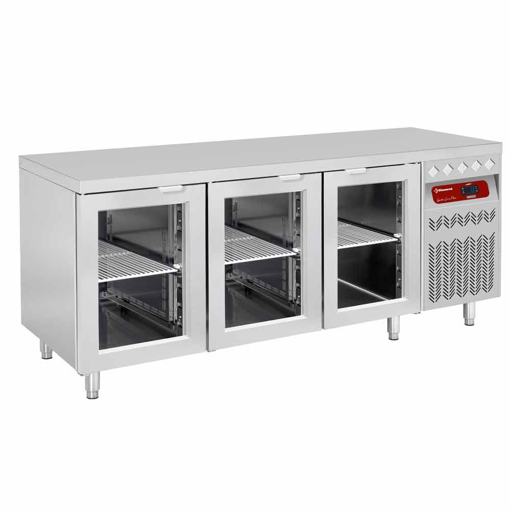Ventilated refrigerated table, 3 glass doors GN 1/1, 405 Lit.